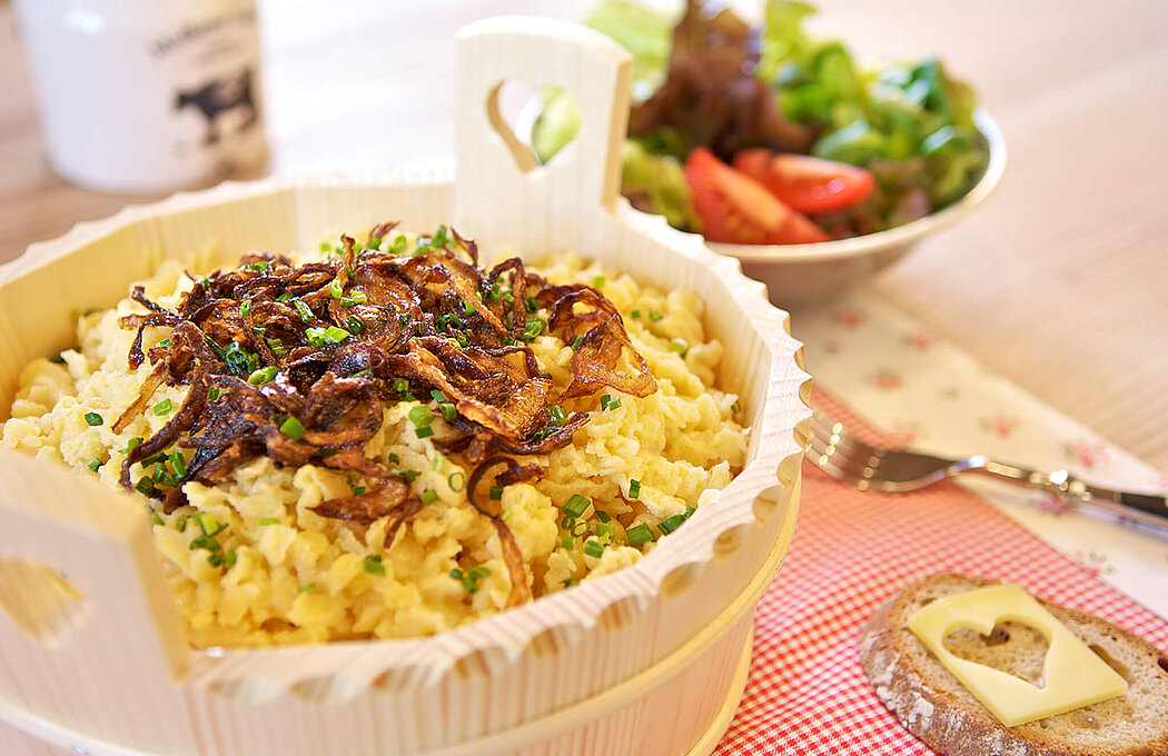 Der Spaziergang muss sein: Von Maierhöfen in Richtung Kugel. Dort wartet der Erlebnis-Hof von Bäuerin Gundi Sontheim. Landwirtschaft zum Anfassen: Tiere, Weiden, alte Obstbäume. Und eine kleine Käserei als Herzstück. Im Hofladen gibt es Bio-Produkte vom Hof und von Freunden. Auch die Hofschänke bietet vor allem das Beste vom eigenen Hof. Das herrliche Ausflugsziel lässt sich auch für Feierlichkeiten buchen. Die Alpe ist neu und doch authetisch, der Käse Labsal pur - kein Wunder, dass dieses Ausflugziel schnell erste Wahl geworden ist.