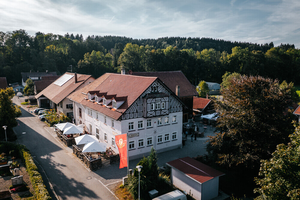 Eine originale Gaststube aus dem Jahre 1906 mit frischer, regionaler Küche, ein gemütlicher Biergarten und ein Eventstadel im ehemaligen Heustock laden zum Genießen, Feiern und Verweilen ein. Für Biker, Ausflügler und Besucher der Allgäuer Genussmanufaktur ein Muss. Im historischen Gebäude finden sich 19 ganz unterschiedlich kreative Hotelzimmer. Hotelgäste begrüßen wir im Hirsch gerne zum Frühstück und zum Abendessen. Unser Tipp: Selbstgemachte Maultaschen in verschiedenen Kreationen – herrlich.