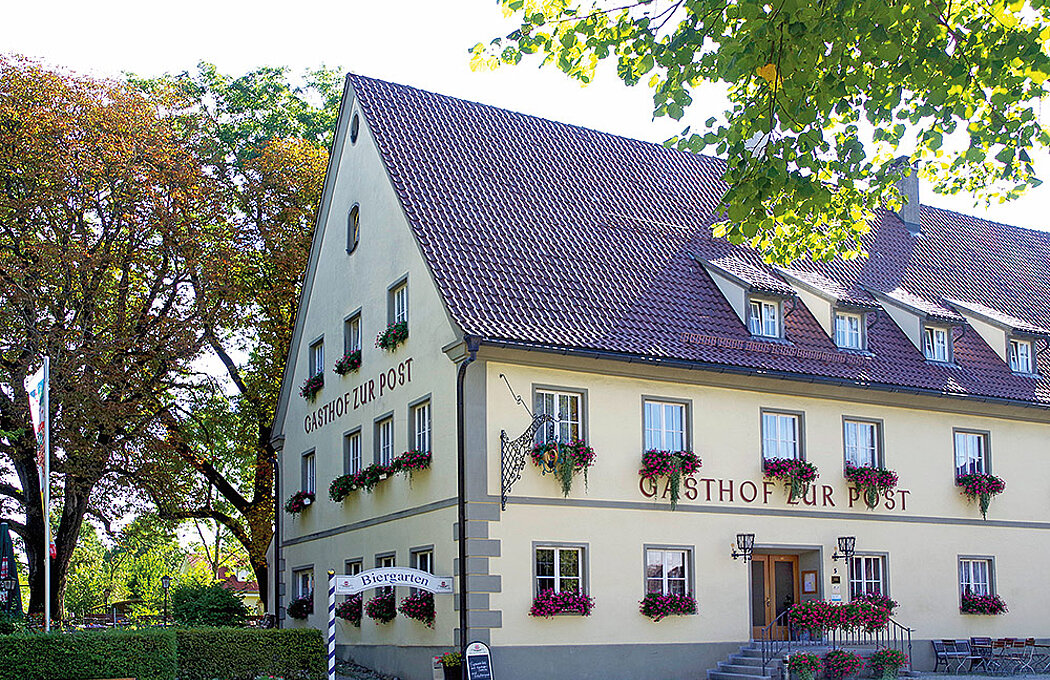 Heimelig und bodenständig, modern und offen: Der Gasthof zur Post mit seinem lauschigen Biergarten ist der Treffpunkt im Musterdorf Wolfegg mit Bauernhausmuseum und Schloss. Wo früher die Pferde gewechselt wurden, kreuzen sich heute die Wege der Radler, Autowanderer oder des internationalen Konzertpublikums. In Restaurant und Saal findet sich immer ein Plätzchen. Der Chef kocht selbst: Seine Reh-Maultschen etwa sind eine Legende. Wer gleich über Nacht bleiben will, schläft im neuen Vollholzhaus bestens...