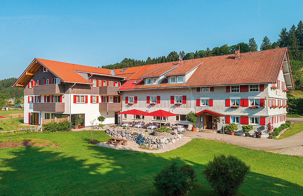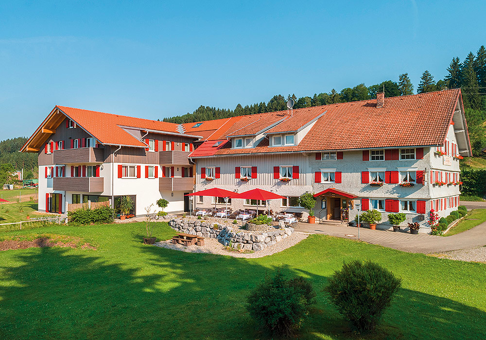 Der Blick vom Hof schweift zu Iberg und Kugel. Die Küche ist bodenständig und regional orientiert, mit Brotzeit und herzhafter Allgäuer Spezialitäten, samz Wild vom eigenen Gehege, im Haus selbst verarbeitet. Der Landgasthof Sontheim war einst ein lehenshof der Ritter von Horben, er wird 1742 erstmals erwähnt. Die Zimmer in Naturholz, wie Zirbe und Tanne fügen sich da bestens ein, Wellness und Schwimmbad sorgen für einen exklusiven Hauch im authentischen bäuerlichen Haus...